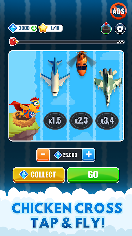 鸡十字路口 - 天空之路 2 是空中冒险游戏,简单点击操控,有多样场景、丰厚奖励机制。支持离线,可选多角色,有全球排行榜。界面流畅,还有去广告、免安装秒玩、内置变速等特性,带来畅快体验。