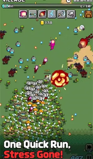 这款游戏融合双IP,有着复古革新的特点,将弹壳特攻队的爽快割草基因与精致像素画风相结合,既有经典幸存者玩法的滚雪球爽感,又有方块世界的探索魅力。游戏中可从酒馆招募战士、法师、忍者等职业猎人,组建三人小队协同作战,不同职业技能组合产生连锁反应,策略深度远超单人割草。武器能进化合成,收集基础武器与配件进行升级,视觉与威力同步蜕变。还支持好友组队探险,共享资源与复活机会,配合释放组合技。并且其有着自动攻击手动走位的简化操作,新手容易上手,技能搭配与走位技巧又有钻研空间。单局时长合适,随时可暂停存档,碎片化友好。角色与武器可通过游戏内方块解锁,无体力限制与强制广告,付费仅涉及外观皮肤,公平竞技。手机与平板账号数据实时同步,支持手柄操作,能带来大屏体验像素细节的精致表现,整体是一款值得尝试的游戏。