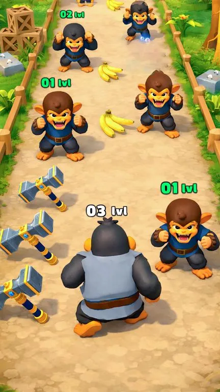 《猿猴进化2026官方正版》优势显著。它拥有令人上瘾的无尽跑酷玩法,让你沉浸其中。流畅的滑行操控,使跑酷体验更加顺滑。有趣的进化系统独具特色,从一只小猿猴开始,不断成长为强大的大猩猩。还有锤子拾取以及多种加速道具和强化道具,助力你在跑酷中更快成长。刺激的丛林环境逼真,令人满意的成长机制带来成就感。终点的终极猩猩变身更是精彩。官方正版保证游戏品质与安全性,能让你放心开启独特的猿类进化之旅,尽情享受这场刺激的跑酷冒险。
