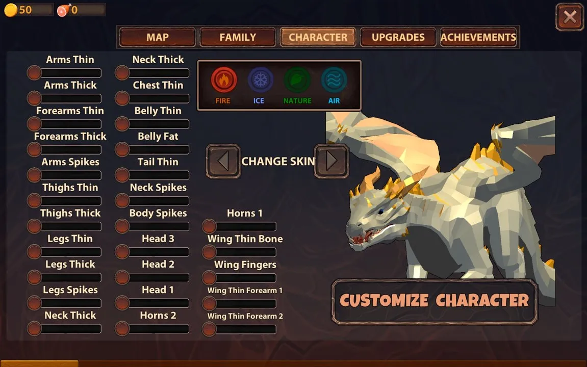 1. 丰富多样的龙元素选择,玩家可挑选火、冰、自然与水四种属性各异的飞龙角色,每种属性都具备独特酷炫技能。