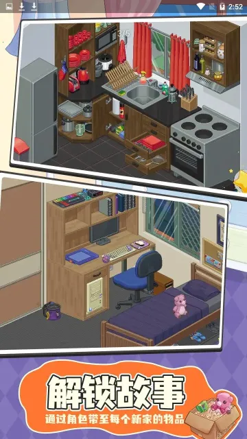 开箱物语(模拟搬家游戏)优势显著。它能让玩家在不断游戏中轻松掌握存储技巧,梳理起来毫不费力。这里有各种各样的故事等待玩家解锁,极大增加了对游戏的体验感。而且玩家收纳物品时没有时间限制,可以安心收纳,把房间整理得井井有条。同时,能透过每次搬家了解角色故事,玩法轻松冥想,从寝室到整栋房子逐步布置新家,还能在日常操作中探索室内角落,乐趣十足。