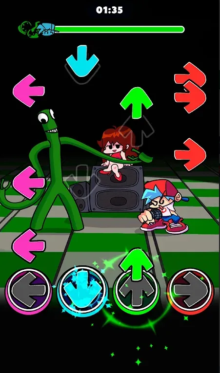 周五夜放克彩虹朋友模组超好玩!它把音乐节奏和彩虹朋友恐怖元素结合得特别妙。玩法就是跟着音乐节奏点击上下左右箭头,操作简单但很考验速度和反应力,过程中还能跟着音乐律动。这里有超多不同玩法,能解锁更多有趣节奏,让你放松心情。只有成功击败对手,才能解锁下一关,提升音乐战斗力。游戏增加了双人模式,能邀请好友一起冒险挑战。它还有很多福利和礼包,容易获得不同奖励来解锁各种角色。而且游戏画面有特色,采用像素美术风格,从角色形象到挑战场景都很独特。每首歌曲都有多档难度可选,由社区创作者精心制作,旋律动听节奏鲜明。对于喜欢音乐节奏游戏的玩家来说,绝对值得一试,能带来不一样的节奏对决体验,快来试试吧!