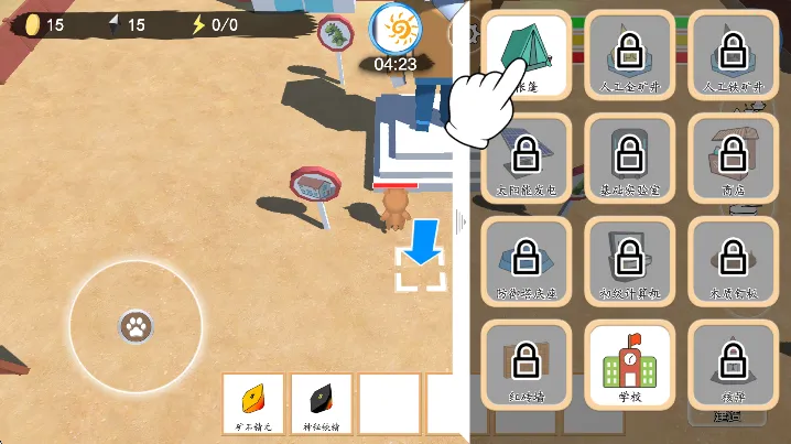 2、开放世界生存:在开放世界努力生存,挑选合适地理环境建庇护所,搜集食物资源,研发科技提升生存能力,建造防御设施抵御敌军。
