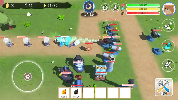 游戏玩法多样,有生存、单路 TD、多路 TD 及防守反击等模式。生存模式中,白天找地形建基地、获取食物、升级科技;初期合理选建筑位置,搭建帐篷与金矿等设施提升资源产出与生存能力。联机模式下,主机玩家创建房间设置难度与地图,加入者输入代码或搜索名称,还能邀好友共同制定规则协作应对敌人。