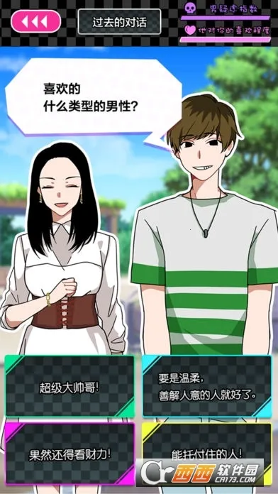 - 游戏中有九个性格各异的男性角色,每个角色都有隐藏故事。玩家在与他们约会过程中,通过日常对话和在其房间搜集证据,揭穿渣男真面目,丰富的剧情场景充满乐趣。
