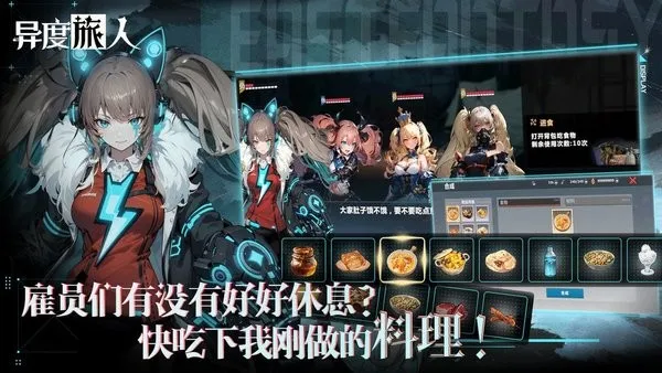 玩法上,有主线巡旅关卡,完成章节可重复挑战收集资源提升角色。抽卡有常驻和限定池,保底机制让你有机会获得橙色品质雇员。雇员培养系统完善,职业多样,升级、进阶、激活天赋都有明确途径。记忆体和芯片系统也很有趣,能提升角色属性,增加战斗策略深度。