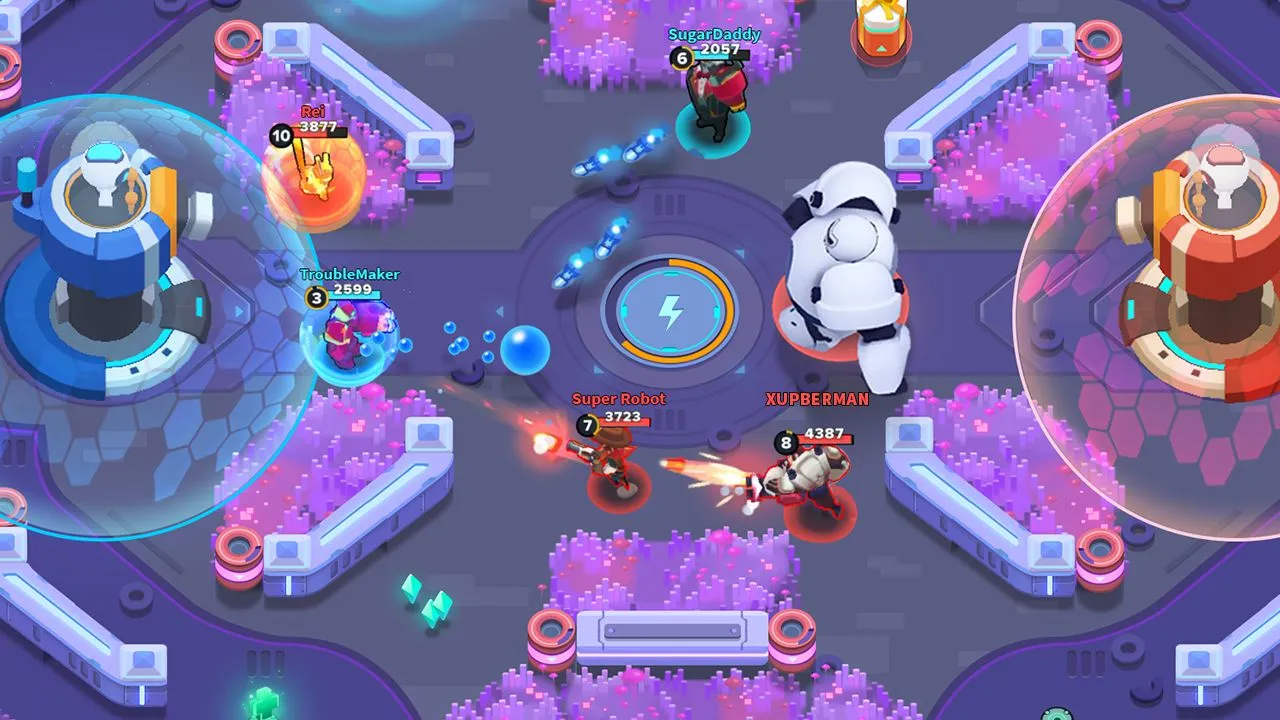 英雄突击是一款融合moba与即时对战元素的多人竞技游戏。它采用卡通美术风格,玩家操控特色各异的英雄与队友协同作战,目标是摧毁敌方防御塔并夺取胜利。游戏提供丰富角色选择和技能搭配空间,每名英雄都有独特战斗体验。快节奏对战与流畅操控手感,带来全新竞技乐趣。其采用真实玩家匹配机制,确保每场对战都是智慧较量。单局对战仅需四分钟,操作简洁易懂,利用碎片时间享受竞技。对战中可直接添加好友,支持实时语音交流,方便组队开黑。游戏内英雄角色众多,组建合理阵容是取胜关键。操控方式直观易上手,左侧虚拟摇杆控制移动,右侧按键施放技能。每位英雄除专属终极技能外,还可自由组合两种基础技能,巧妙搭配能提升胜率。战场中散布的宝箱可被击破,能引发惊喜效果。此外,还有12人激情生存模式、4v4经典推塔对决、4v4团队歼灭竞赛等多种精彩模式,更多模式也在规划中。