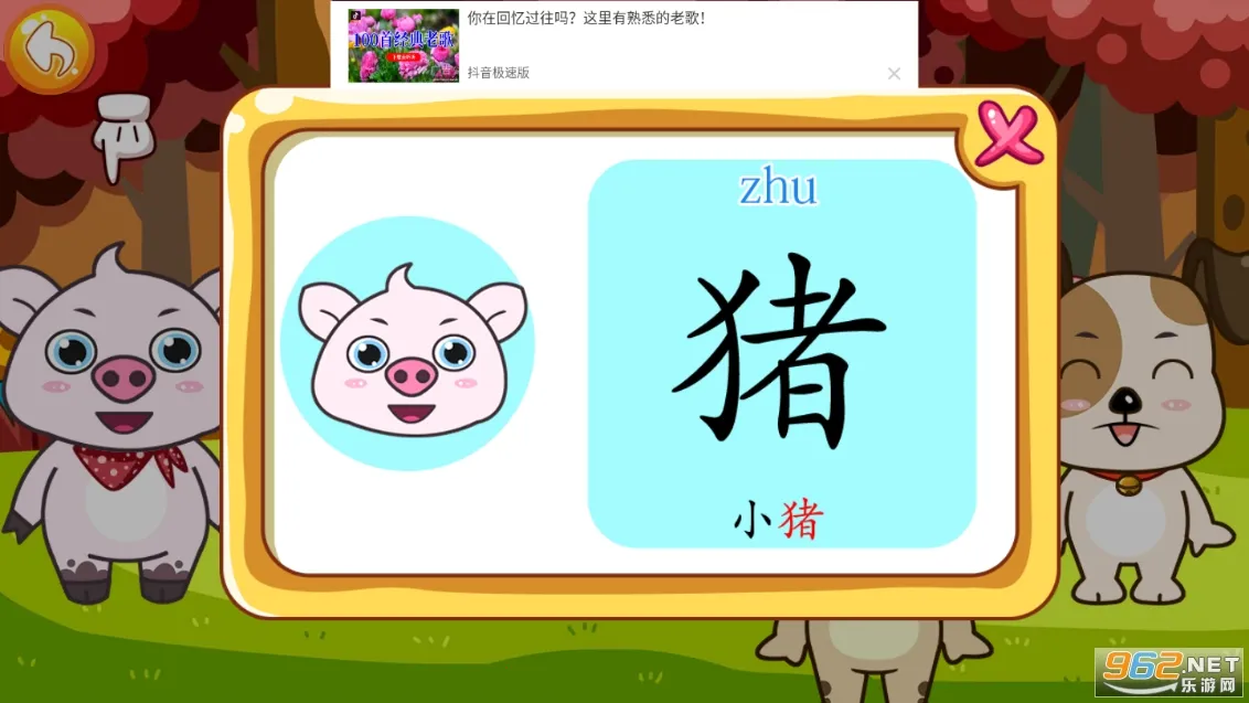 儿童宝宝学汉字安卓版专为2至6岁学龄前儿童设计,有六个游戏模块,画面精美发音标准。通过游戏实现教育目标,形成学习闭环,还持续更新内容,支持亲子互动,能帮助孩子轻松启蒙识字。