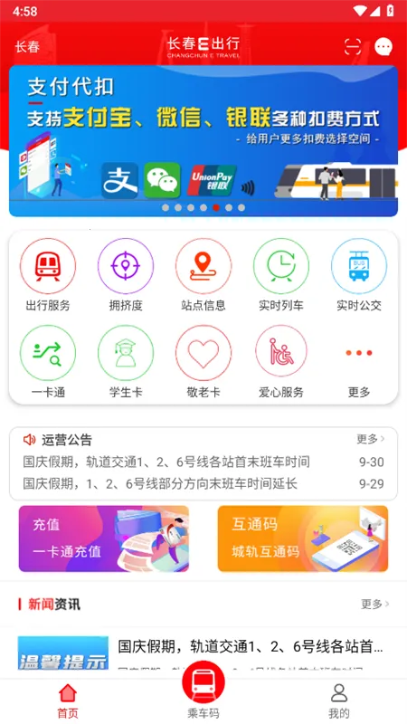 长春E出行安卓版是长春轨道交通一卡通官方客户端,提供地铁公交一卡通、充值、刷码进站、线路查询等功能。界面简洁,操作方便,还能实时掌握车辆到站信息,让出行更便捷,尽享绿色出行新体验。