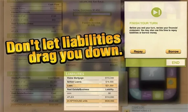 富爸爸现金流最新手机版优势显著。它能助你快速树立正确金钱观念,学会处理现金,把握金钱脉搏,看清资产负债,发现投资机遇,躲避陷阱,养成正确投资习惯。**个性化学习**根据玩家进度和能力提供专属内容与挑战。还有**交互式学习**,多种交互方式帮你理解复杂财务知识和投资策略。全球化社区让你与全球玩家交流,**实时市场更新**使你同步现实市场动态,随时了解行情,在投资世界中如鱼得水,快来体验吧。