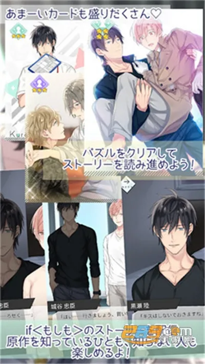 这款游戏相当精彩。它是根据动漫改编的耽美游戏,有着超级唯美的CG图画,故事剧情丰富多样。消除玩法轻松简单,还有海量游戏对话。在游戏中,玩家能自由选择,决定城谷与黑濑的命运,体验分岐故事,哪怕没看过原作也能尽情享受。游戏里有无数美丽的立绘和CG,通过扭蛋或看故事收集,每张卡还有不同技能,可自由享受消除游戏。消除规则简单,点击相同连起来的可爱团子就能消除通关,还能获得故事点数观看新故事。人物方面,城谷忠臣、黑濑陆等角色各具特色,他们的CV阵容强大,为角色增色不少。总之,是一款很值得一玩的游戏。
