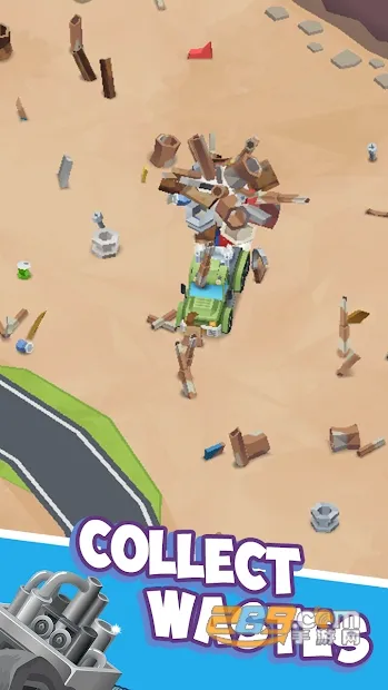 2、玩家通过拖动屏幕,控制车辆收集废料。