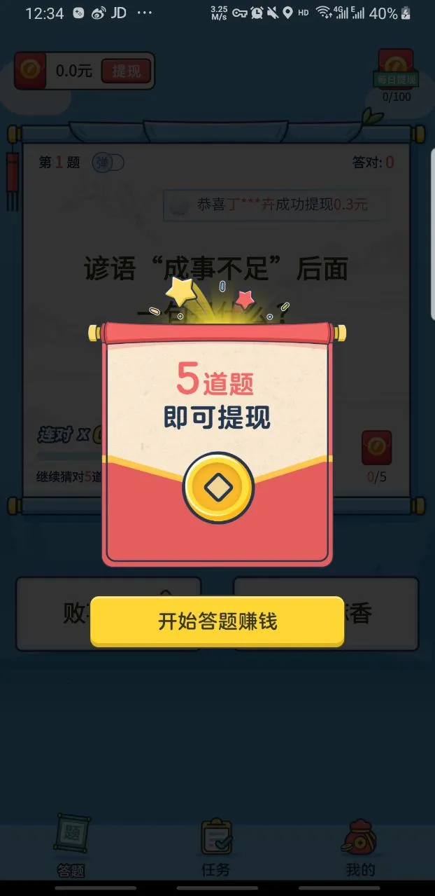 很多人想知道成语大赢家提现300元是不是真的。成语大赢家是一款超有趣的猜成语闯关游戏。它能帮你快速积累成语知识,海量成语让你学以致用。在这里,你既能独自沉浸答题,积累知识,也能邀请好友同台竞技。游戏关卡难度各异,由浅入深,每闯过一关,不仅能收获丰厚奖励,包括实用道具,还能接触大量课外知识。而且不用担心失败,可多次挑战直至成功。它有多种趣味模式,如头脑风暴辨别真伪等。以简单的操作方式,让你轻松上手。在玩乐中,你能通过看图猜成语、经典成语谜语和歇后语等方式学习成语,还有50000离线成语大词典详解成语前世今生,整合400个经典有声成语故事讲解来龙去脉。快来下载体验,在成语世界里尽情遨游,至于提现300元是否真实,玩过便知啦。