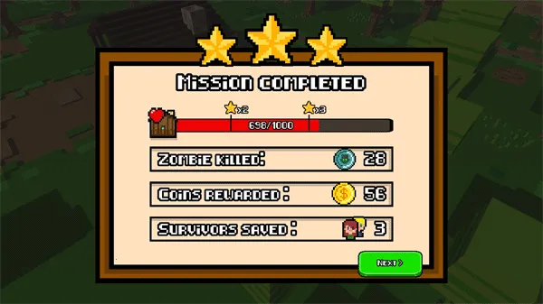 像素暴力美学呈现:8-bit像素风与血浆特效结合,僵尸爆炸成方块碎片,视觉冲击力强。复古画面运行流畅,发热量低,老旧机型也能畅玩,风格独特辨识度高。