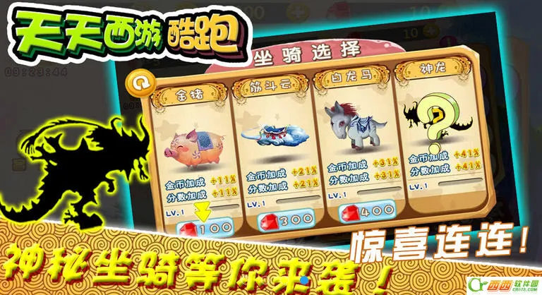 天天西游酷跑2能让你体验超刺激的西游跑酷之旅!它以经典西游记为背景,结合跑酷玩法,让你化身师徒四人勇斗妖怪。这里有多重角色任你选,惊险刺激的跑酷过程经典重现。游戏精选受欢迎的萌宠陪跑,还有帅气座驾机车助力,能增速并获附加能量。你还能变身各式超人,拥有独特技能造型。它的玩法丰富,角色、宠物、坐骑系统俱全,升级成长乐趣多。西游元素与游戏功能紧密结合,异域神话风情满满。历经九九八十一难,不同任务目标和难度,最终得见如来佛祖。在这里,你能享受精美场景带来的视觉盛宴,道具华丽助你战无不胜。快来开启这场热血刺激的西游跑酷冒险吧!