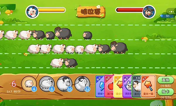 进入游戏,面对黑羊出动,拖动白羊到对应跑道,比对方羊力量强就能压制后退。要是觉得势均力敌,还能用道具抵御。这里的羊各具特色,像重装的羊羊大力能承受伤害,敏捷的羊羊灵动可快速突袭,魔法师有强大魔法输出,天使能治疗增益,魅惑羊羊可控制敌人。