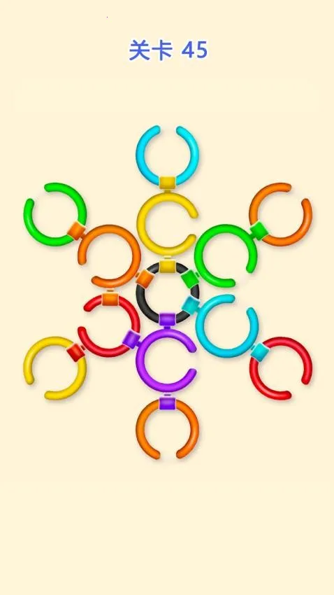 4、第45关需要拆解13个圆环,玩家可以从外围区域拆除,一个一个的拆除圆环