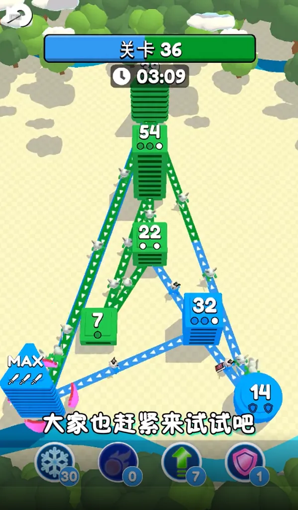 2. 围绕城市地盘争夺展开核心玩法,通过划线连接塔楼,灵活运用战术,攻守兼备。