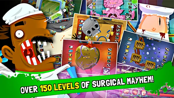 疯狂外科医生4是一款模拟外科手术的休闲闯关手游。它有着抽象魔性的卡通画风,人物和场景夸张怪诞,带来特别的惊奇体验。游戏中玩家将接收各种重伤病人,需运用工具修复伤口,在规定时间内完成任务即可过关。