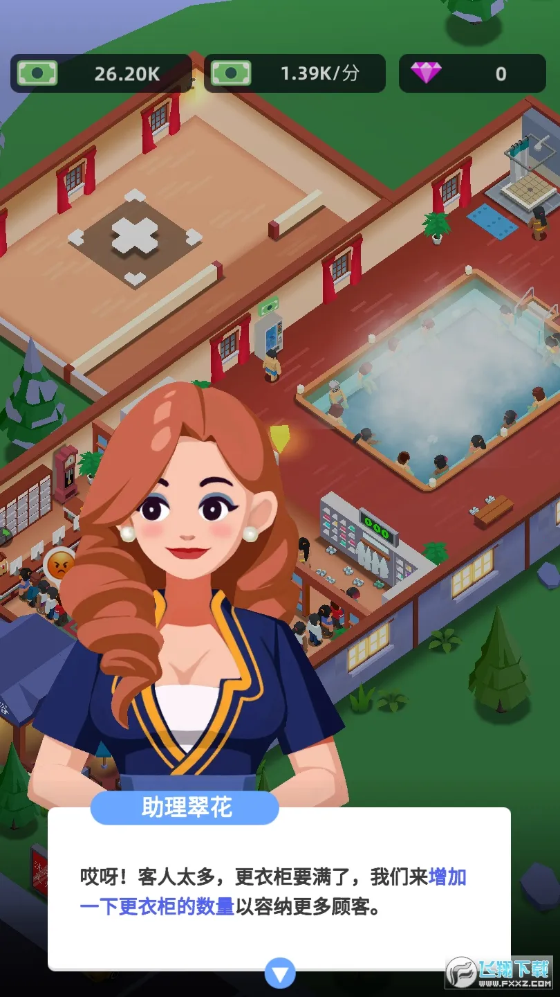 想知道怎么成为温泉大亨吗?这款以温泉旅馆建设为主要玩法的模拟经营游戏超有趣!在游戏里,你能从一家小型温泉馆起步,通过合理规划场地布局、雇佣和分配员工、升级设施与服务项目,逐步扩大经营规模。这里面门道可多啦,比如悉心管理前台,能让收银速度更快,现金流更充裕;发布推广活动,吸引顾客来享受最棒的服务,记得扩建更衣柜接纳更多客人;还要保证游客等待时间短,提供舒适服务专案。你还能决策打造高级服务设施,加薪调动员工积极性,提升服务效率。游戏特色满满,真实还原洗浴文化,有多元化服务建设,还有精美视觉表现。操作简单易上手,服务项目持续解锁,互动式经营反馈超有代入感。快来试试,体验当温泉大亨的乐趣,享受轻松又充实的经营之旅!