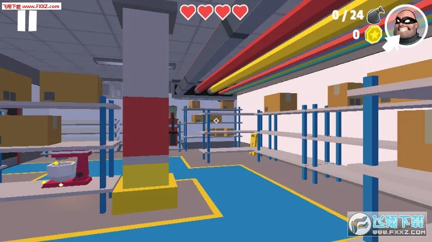 《疯狂强盗》是一款风格独特的搞笑模拟游戏,以多边形构建特殊画风。玩家扮演强盗,在购物中心躲避监控与危险物品抢商品。玩法多样,有独特敌人,可挑战难度、找秘密房间,通过灵活走位完成抢劫。