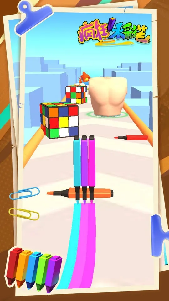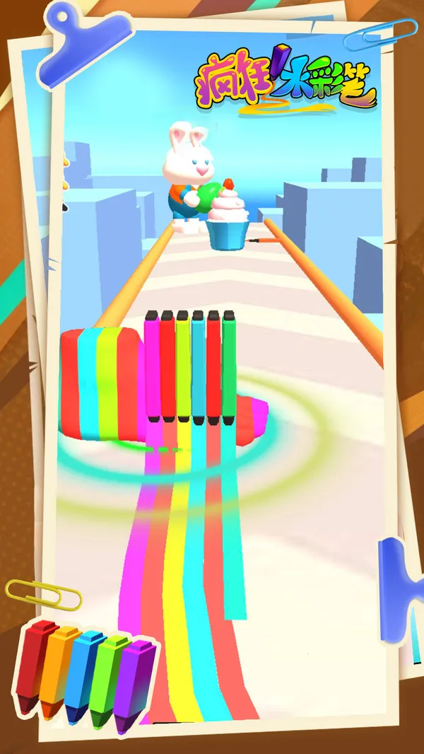 疯狂水彩笔是一款充满创意与趣味的休闲跑酷游戏。玩家化身水彩笔穿梭于色彩斑斓的世界,操控它躲避重重障碍,收集散落的水彩笔为公主裙摆添彩赢积分。游戏操作简单,关卡丰富,卡通画风清新明快,很适合打发闲暇时光。