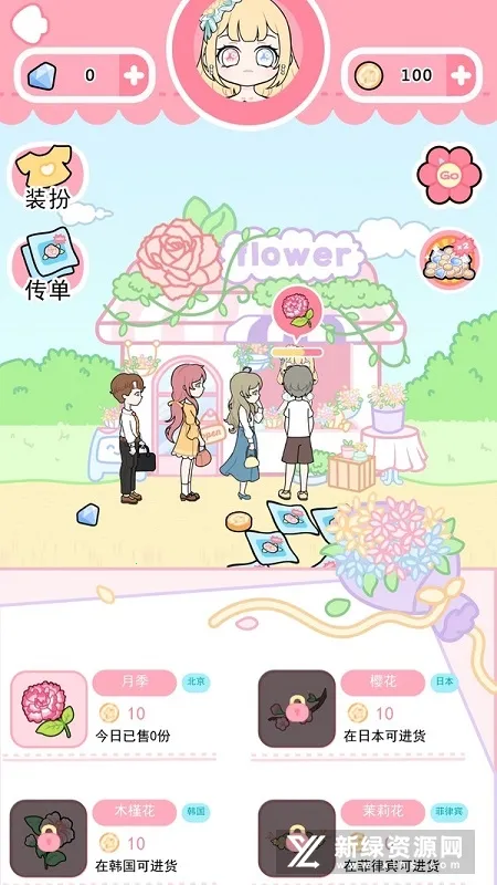 4. 特色经营玩法:包含自营花店模拟经营新玩法,可开一家梦幻花店,为客人装扮浪漫花束,解锁更多花朵,发挥个性创意进行装扮比拼。