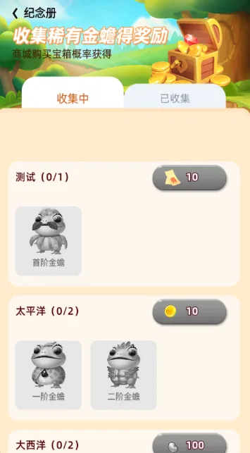 金蟾跃龙门是一款颇具特色的游戏。它以独特的合成玩法吸引玩家,通过合成金蟾升级来获取红包币,养成并解锁各类图鉴。游戏玩法简单易懂,手指滑动合并同一品种就能升级,消除合成的过程轻松有趣。在这里,有无数可爱金蟾开展生活互动,玩家可以轻松培养获得红利。完成目标任务还能直接挣奖励,福利满满。参与线上互动培育,解锁收集多类型品种,喂食互动让金蟾健康成长。而且,解锁合成多种物品可获赠道具金币,收集多种图鉴还能赚红包。色彩缤纷的丰富图形,能让玩家感受到别样快感和放松的合成氛围。合成消除时红包掉落,真正实现消除拿红包,给玩家带来独特的游戏体验,值得一试。
